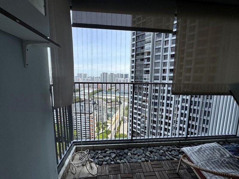 This well-maintained, fully-furnished unit boasts a thoughtful layout with standout features including a stylish platform bed in the master bedroom, a loft bed with an integrated study desk in the common bedroom, and extensive built-in storage throughout. The balcony, adorned with artificial turf, offers a perfect spot to unwind while soaking in the panoramic views.