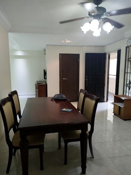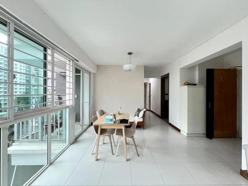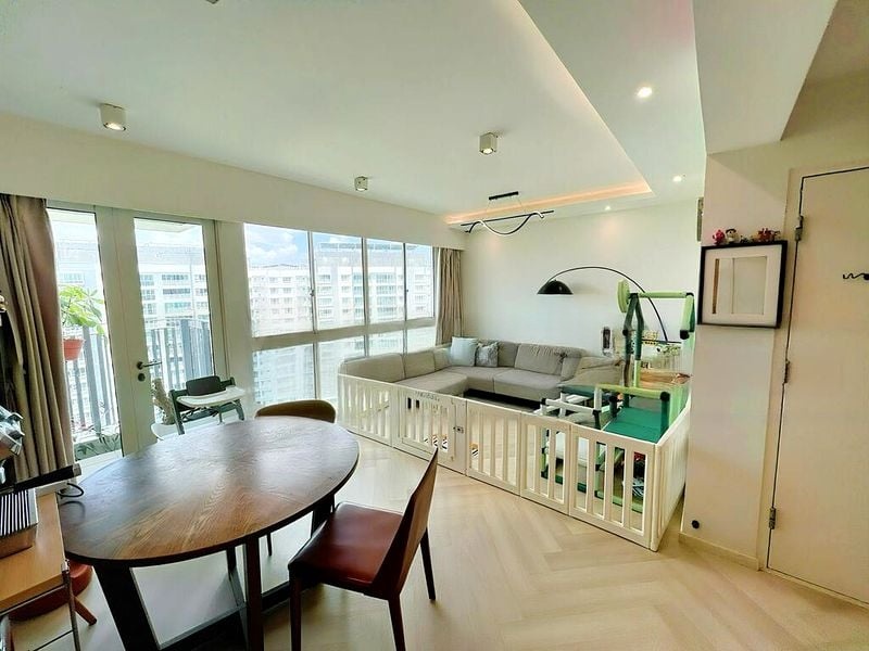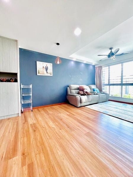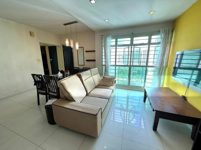 Step into this beautifully maintained HDB flat and be greeted by an abundance of natural light that fills the space, creating a bright and airy ambiance. The modern finishes, including a stylish dark TV feature wall and full-height built-in wardrobes, enhance the inviting atmosphere, while the balcony offers a serene view of the lush greenery and playground below.