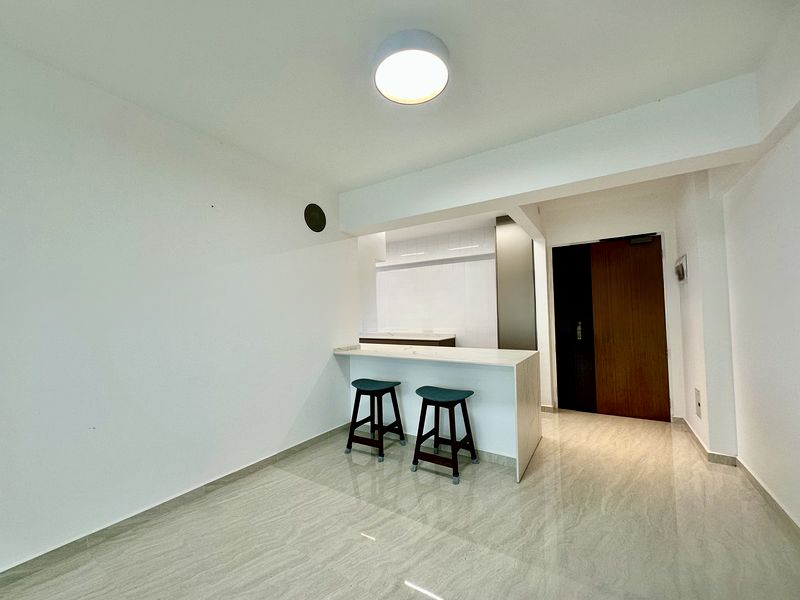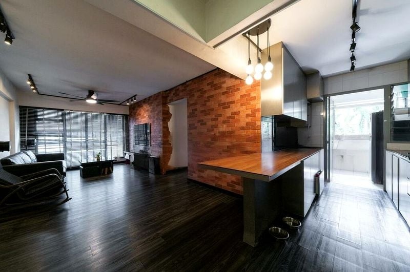Step into a world of modern elegance as you enter this beautifully renovated HDB unit at Punggol Pl. The striking exposed brick feature wall and industrial track lighting create a captivating ambiance, while the dark wood-look flooring adds warmth. Large windows invite moderate natural light, enhancing the urban views and making the space feel open and inviting.