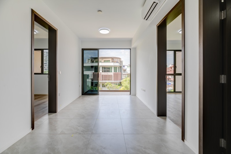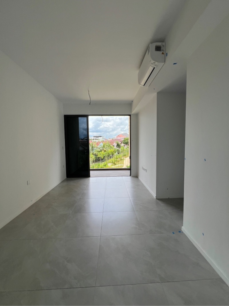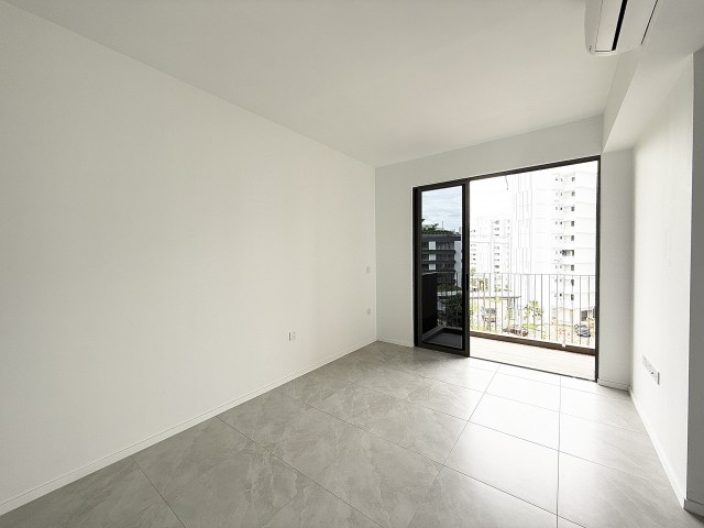 Step into a brand-new sanctuary where abundant natural light floods the space, accentuating the modern minimalist design. The open living area, adorned with grey tiled flooring and white walls, seamlessly connects to a private balcony that offers stunning urban views, inviting you to unwind in style.
