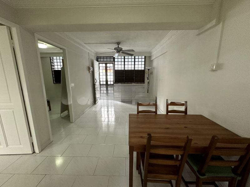 Step into this inviting 2-bedroom HDB unit at 8 Holland Ave, where the bright and airy ambiance welcomes you with open arms. The light wood-look flooring flows seamlessly throughout the living and dining area, complemented by white walls that enhance the natural light filtering in. From the high floor, enjoy serene views of lush greenery and neighboring HDB blocks, creating a tranquil retreat in the heart of Queenstown.