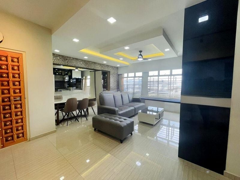 This well-maintained 3-bedroom unit boasts an efficient layout, featuring a spacious living room with an integrated TV feature wall, a dining area with a stylish bar counter, and a contemporary kitchen equipped with a built-in oven and sleek black granite-style countertops. The master bedroom offers a private retreat with an en-suite bathroom and built-in wardrobe, complemented by a suggested study area and a dedicated household shelter for added convenience.