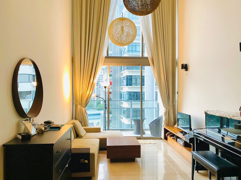 This well-maintained Type BL Lower Loft unit offers a unique layout across two levels. The lower floor encompasses a stylish living and dining area, a modern kitchen, and a second bedroom with a large window framing the urban landscape. Ascend to the upper level to discover the master suite, complete with an en-suite bathroom and an internal glass window that overlooks the living space, creating a seamless connection between levels.