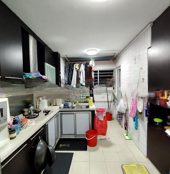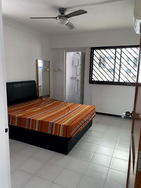 Step into this inviting 2-bedroom flat, where moderate natural light filters through windows adorned with security bars, creating a warm and functional ambiance. The wood-look laminate flooring adds a touch of comfort, while the urban view offers a glimpse of the vibrant surroundings.