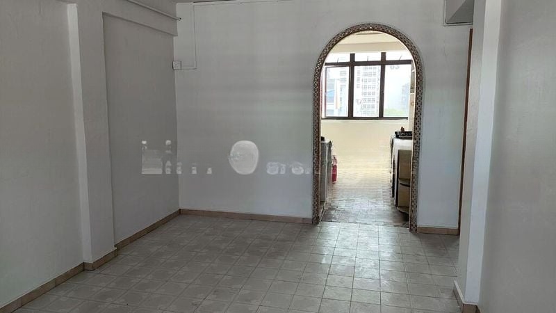 Step into this inviting 3-room flat where the classic terrazzo flooring greets you with a nostalgic charm, evoking a sense of warmth and character. The living area, adorned with extensive wall decorations, offers a cozy ambiance, while the urban views remind you of the vibrant life outside. Although the natural light is limited, the lived-in feel adds to the homey atmosphere, making it a perfect canvas for your renovation dreams.