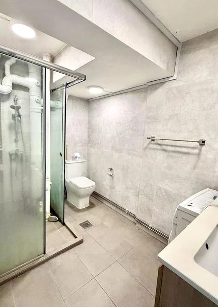 This well-maintained 2-bedroom unit features a galley kitchen equipped with wood-finish cabinetry, a stainless steel double sink, and a gas cooktop, perfect for culinary enthusiasts. The master bedroom boasts an en-suite bathroom and a spacious dark wood built-in wardrobe, while the second bedroom also offers a built-in wardrobe and ample space for relaxation. Each room is fitted with wall-mounted air conditioning units, ensuring comfort throughout the year.