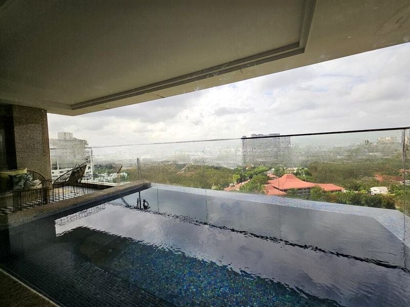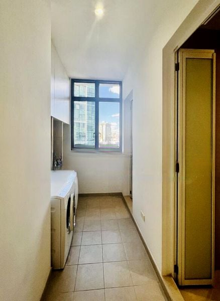 This well-maintained 4-bedroom, 5-bathroom unit features standout elements such as a full marble bathroom with a luxurious bathtub overlooking the city, an integrated kitchen with sleek black granite countertops, and a sophisticated wine chiller. The U-shaped kitchen layout, complete with a glass partition and recessed lighting, is perfect for culinary enthusiasts. The spacious walk-in closet and utility room add practicality to the luxurious living experience.