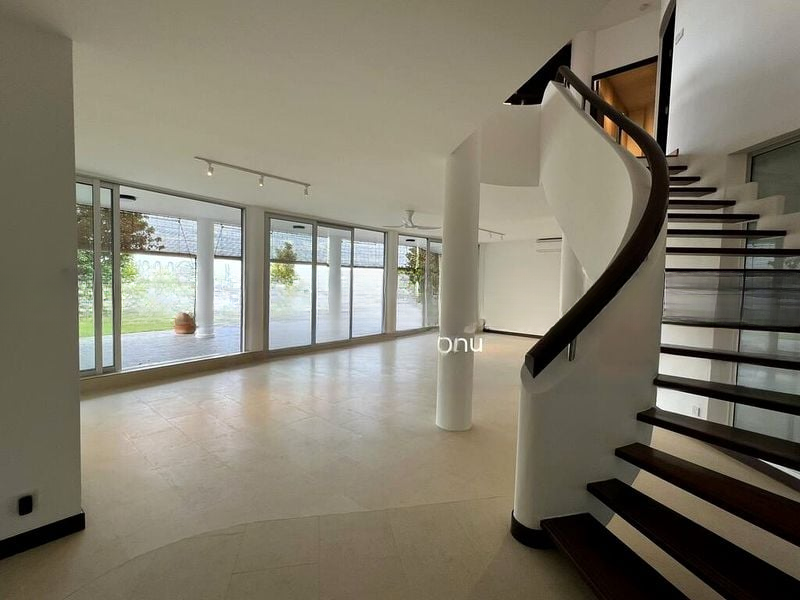 This well-maintained 4-bedroom, 6-bathroom condominium boasts an open-concept living room with sleek tile flooring and track lighting, perfect for entertaining. The standout features include a large terrace adorned with artificial turf, ideal for relaxation, and a master bedroom with elegant parquet wood flooring and ample natural light. The unique curved architecture of the balcony, paired with bamboo blinds and potted plants, creates a serene outdoor oasis.
