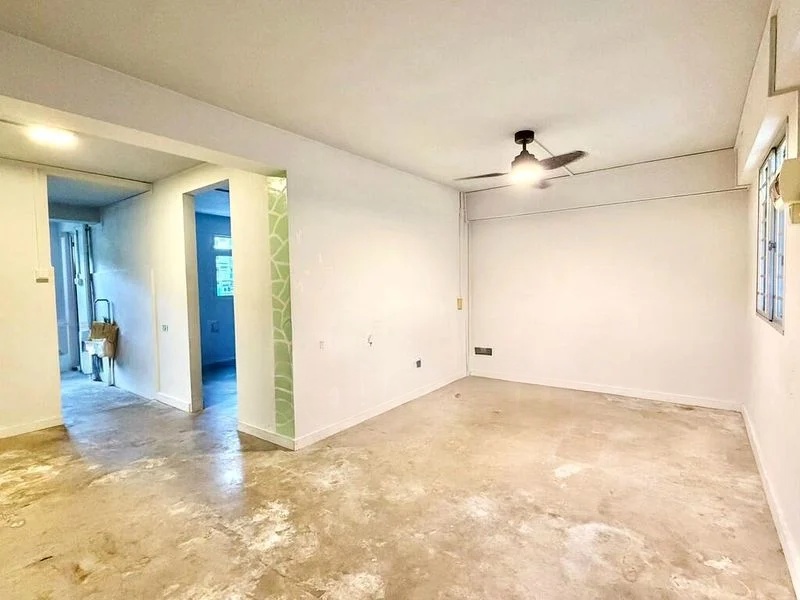Step into this blank canvas of a 1-bedroom flat, where the open-concept living area invites you to envision your dream space. Bathed in moderate natural light, the concrete flooring and ceiling fan create a refreshing ambiance, while the views of lush greenery add a touch of serenity to urban living.