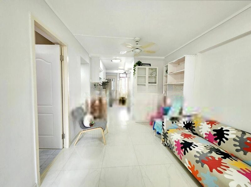 Step into this inviting 3-bedroom flat, where a tiled feature wall adorned with traditional decorations greets you, creating a warm and nostalgic ambiance. Natural light filters through the windows, illuminating the functional living and dining area, complete with a floral-patterned sofa and an arched doorway that adds character to the space. The views of greenery and the urban landscape provide a refreshing backdrop, making this home a serene retreat amidst the bustling city.