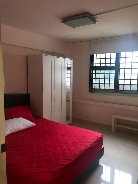 This well-maintained unit features three cozy bedrooms, each equipped with window security grilles and roller blinds for added comfort and safety. The fully-furnished layout includes a metal bed frame in one room and a white three-door wardrobe in another, ensuring ample storage. The tiled flooring throughout enhances the practicality of the space, while the proximity to Tiong Bahru Plaza and a sheltered bus stop makes daily commuting a breeze.