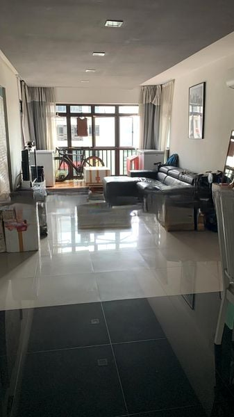 Step into a beautifully renovated sanctuary where modern design meets functionality. The open-concept living area greets you with large format light-colored tiles that reflect the ambient light, complemented by an elegant L-shaped leather sofa. The balcony invites you to enjoy urban views, creating a perfect backdrop for relaxation.