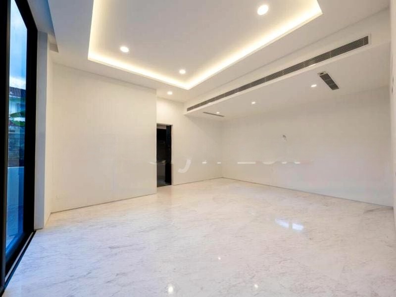 Step into a world of elegance as you enter this brand-new modern detached house, where abundant natural light dances across the pristine white marble flooring. The open-concept living room, adorned with floor-to-ceiling glass sliding doors, offers breathtaking views of lush greenery and the inviting private swimming pool, creating an ambiance of tranquility and luxury.