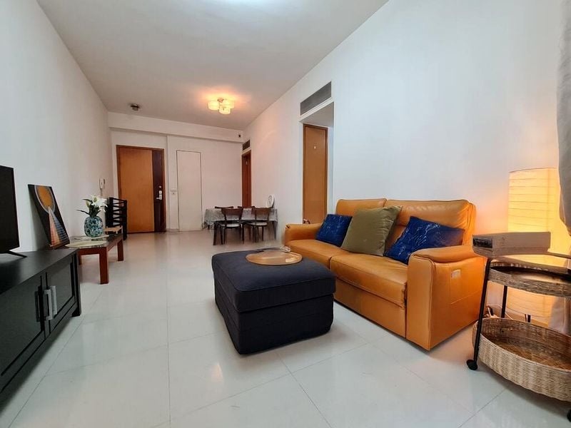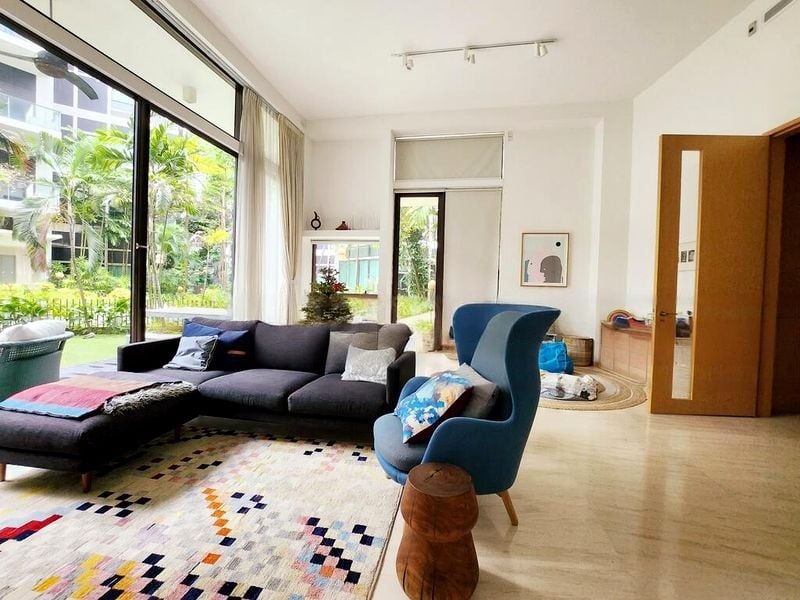 Step into a world of elegance and tranquility as you enter this stunning ground floor unit at Belle Vue Residences. Bathed in natural light, the spacious living room features high ceilings and floor-to-ceiling windows that seamlessly connect to your private garden, creating an inviting ambiance that feels both bright and airy. The luxurious marble flooring throughout enhances the sense of sophistication, making it a perfect retreat for relaxation and entertainment.
