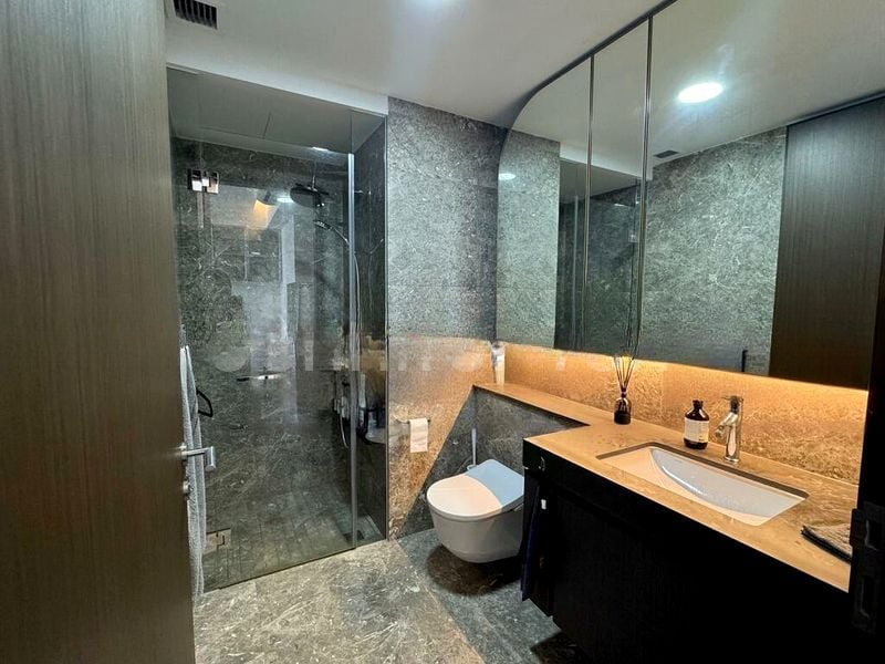 Step into a world of modern elegance as you enter this brand-new 1-bedroom unit at Avenue South Residence. Bathed in natural light, the open-concept living area features exquisite marble-look floor tiles and sliding glass doors that lead to a spacious balcony, offering breathtaking views of the city and surrounding greenery.