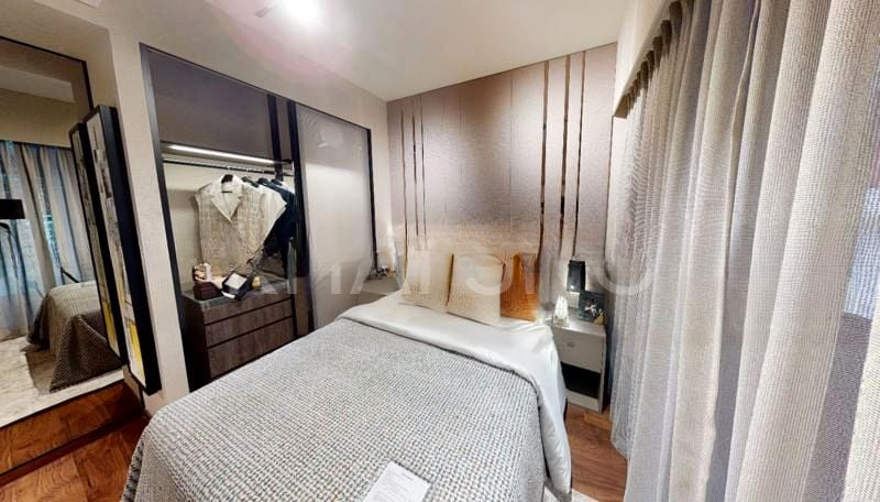 Step into a world of modern elegance as you enter this beautifully renovated unit at THE M. The first thing that captures your attention is the seamless blend of natural light and minimalist design, accentuated by views of the city skyline and the inviting pool. The frosted glass sliding wardrobe and marble-look bathroom tiles add a touch of sophistication, creating a serene ambiance that feels both luxurious and welcoming.
