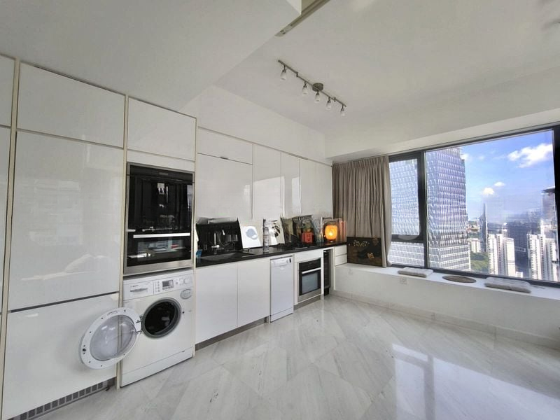 This well-maintained 1-bedroom, 1-bathroom unit features standout elements such as integrated kitchen appliances, a wine chiller, and a frosted glass bathroom partition that adds a touch of luxury. The spacious layout ensures comfort, while the wall-hung toilet and marble-look wall tiles in the bathroom enhance the contemporary feel. Enjoy seamless living with a perfect blend of functionality and aesthetics.