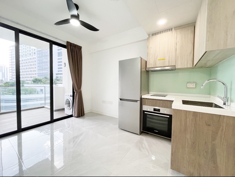 Step into a sanctuary of modern elegance at Uptown @ Farrer, where abundant natural light floods the space, accentuating the sleek finishes and minimalist design. The city view from the balcony invites you to unwind in style, while the contemporary grey floor tiles and wooden accents create a warm and inviting ambiance.