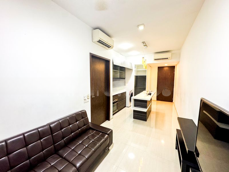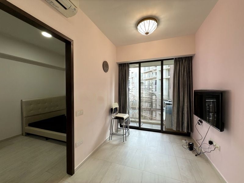Step into a world of modern luxury as you enter this impeccably designed unit at D'NEST. The abundant natural light floods the open-concept living space, highlighting the polished tile flooring and the elegant wood-paneled feature wall. With designer tube pendant lighting and cove lighting creating a warm ambiance, you will feel an immediate sense of comfort and sophistication. The views of lush greenery from the balcony invite you to unwind in your own private oasis.