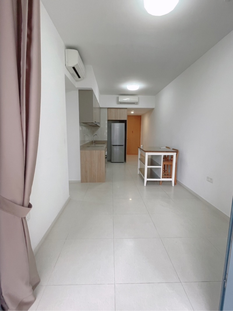 Step into a world of elegance and tranquility as you enter this brand-new 3-bedroom unit at Twin Vew. The abundant natural light floods through the floor-to-ceiling windows, offering stunning views of the pool, greenery, and the vibrant city skyline. The airy ambiance is complemented by light-colored tiled flooring, creating a welcoming atmosphere that invites relaxation.