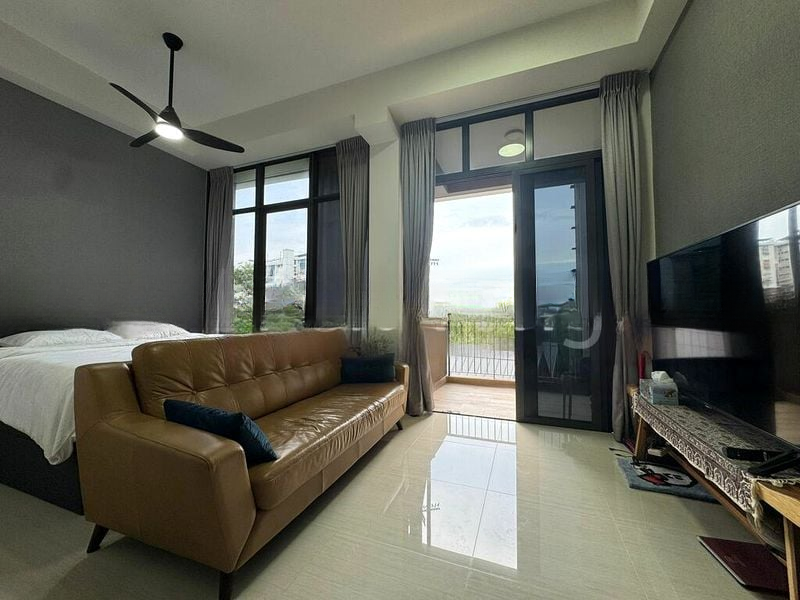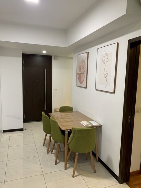 Step into a serene oasis where modern minimalism meets natural beauty. This well-maintained 2-bedroom unit welcomes you with an abundance of natural light filtering through large windows, illuminating the open-concept living area. Enjoy the lush greenery views from your Private Enclosed Space (PES), creating a tranquil retreat right at home.