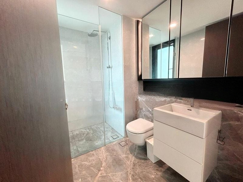 Step into this beautifully renovated 1-bedroom unit at Principal Garden, where abundant natural light floods the space, accentuating the polished stone flooring and modern minimalist design. The sliding glass doors lead you to a private balcony, offering stunning views of the city skyline, creating an inviting ambiance that feels both spacious and serene.