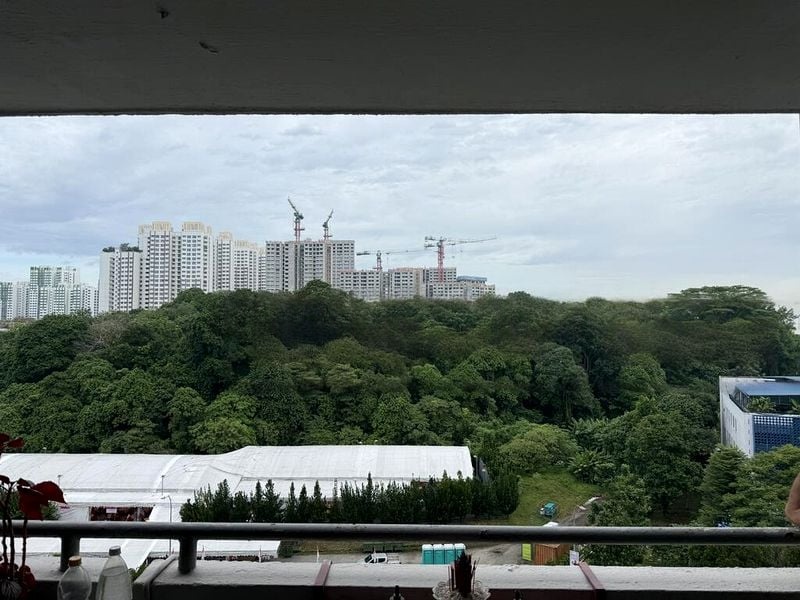 Step into a warm and inviting atmosphere where modern comfort meets functionality. The living room greets you with an L-shaped sofa, enhanced by a stylish false ceiling with cove lighting that creates a cozy ambiance. Enjoy views of neighboring HDB blocks and the urban landscape, all while basking in the moderate natural light that fills the space.
