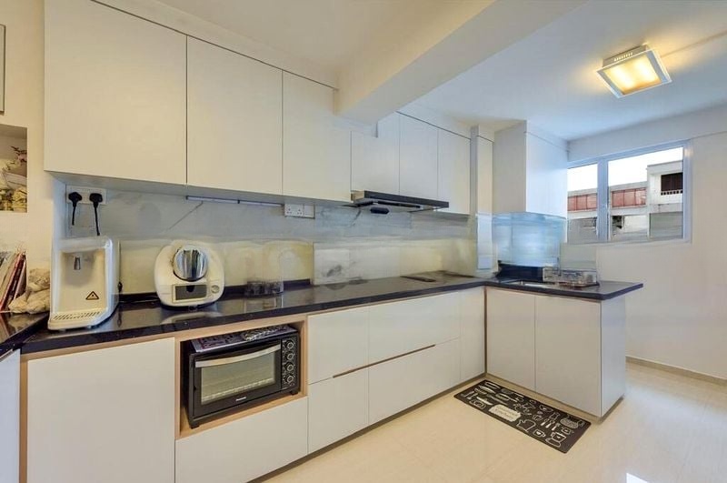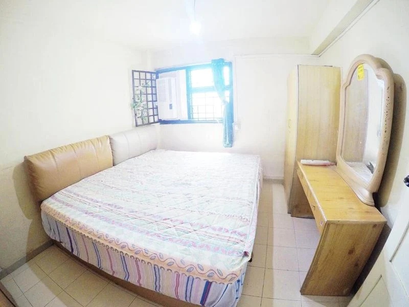 This well-maintained 3-bedroom flat features a practical galley-style kitchen with sleek white cabinetry and dark countertops, perfect for culinary enthusiasts. The bedrooms are generously sized, with dark wood-look laminate flooring and wall-mounted air conditioning for comfort. Enjoy the serene views of unblocked greenery and nearby HDB blocks, creating a peaceful ambiance throughout.