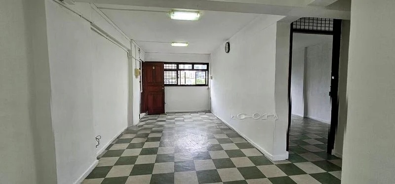 Step into a bright and airy sanctuary at 21 Telok Blangah Cres, where abundant natural light floods the spacious living and dining area, accentuated by light wood-look laminate flooring and pristine white walls. The arched doorway leading to the kitchen adds a touch of elegance, inviting you to explore further.