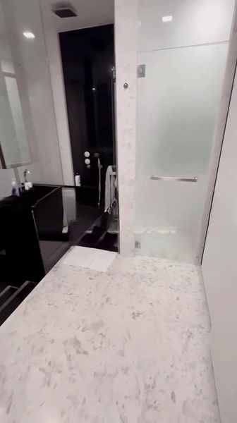 This thoughtfully designed 2-bedroom, 2-bathroom condo features a seamless layout, perfect for modern living. The living room boasts high ceilings and balcony access, while the kitchen is equipped with white quartz countertops and wood-look cabinetry, ensuring both style and functionality. Retreat to the master bedroom with its parquet flooring and bay window, or unwind in the luxurious bathroom featuring a bathtub with a view and elegant marble wall tiles.