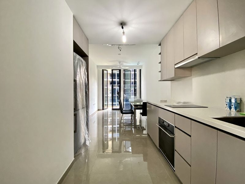 Step into a world of modern elegance as you enter this brand-new 1-bedroom unit at The Tapestry. Bathed in abundant natural light, the open-concept living and dining area features glossy floor tiles and floor-to-ceiling windows that frame stunning views of the lap pool and lush greenery, creating a serene urban oasis.