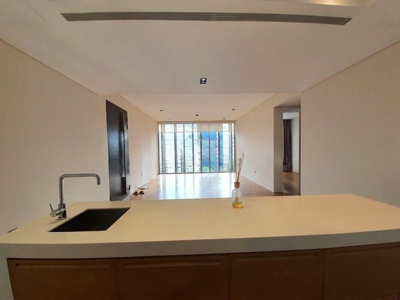Step into a world of elegance and sophistication as you enter this brand-new unit at Hilltops. The abundant natural light floods through the floor-to-ceiling windows, illuminating the open-concept living and dining area adorned with light wood flooring and recessed lighting. The modern minimalist ambiance is complemented by breathtaking views of the city skyline, creating a serene yet vibrant atmosphere.