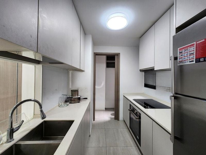 Step into a world of contemporary elegance at The Woodleigh Residences, where abundant natural light floods the open-concept living and dining area, accentuated by floor-to-ceiling windows. The modern minimalist ambiance invites you to unwind, while the balcony offers a serene escape with unblocked views of lush greenery and the surrounding residential landscape.
