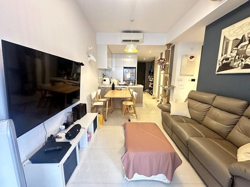 Step into a serene oasis at Jewel @ Buangkok, where modern minimalist design meets comfort. The open concept living area invites you in with its tiled flooring and abundant natural light filtering through floor-to-ceiling curtains. Enjoy tranquil views of the pool and lush greenery from your balcony, creating a peaceful retreat in the heart of the city.