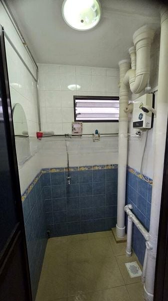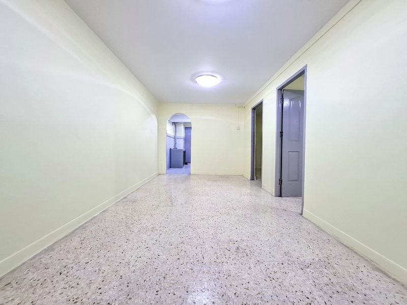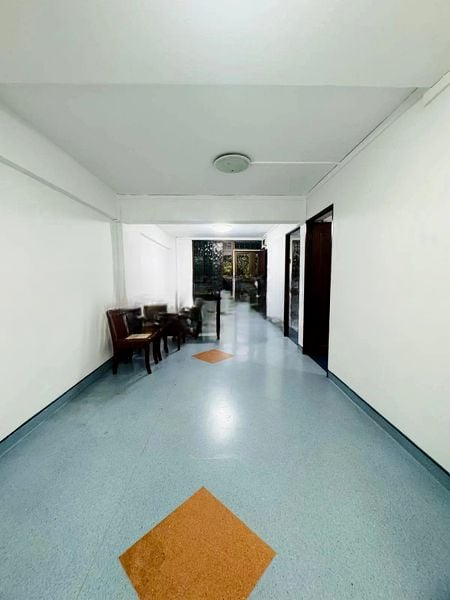 Step into a world of simplicity and functionality as you enter this spacious HDB flat at 209 Boon Lay Place. The long rectangular living and dining area greets you with moderate natural light filtering through the windows, complemented by light blue flooring adorned with orange diamond accents. The ambiance is inviting, offering a sense of comfort with views of neighboring HDB blocks that foster a community feel.