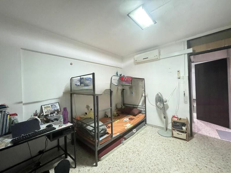 This well-maintained 3-bedroom, 2-bathroom unit features a standout island kitchen equipped with an integrated sink, built-in oven, and gas hob, ideal for culinary enthusiasts. The spacious living room seamlessly connects to the balcony, while the master bedroom boasts a built-in sliding wardrobe and a generous window ledge. Additional highlights include a study room with wall-to-wall shelving and a second bedroom adorned with charming pink accent walls.