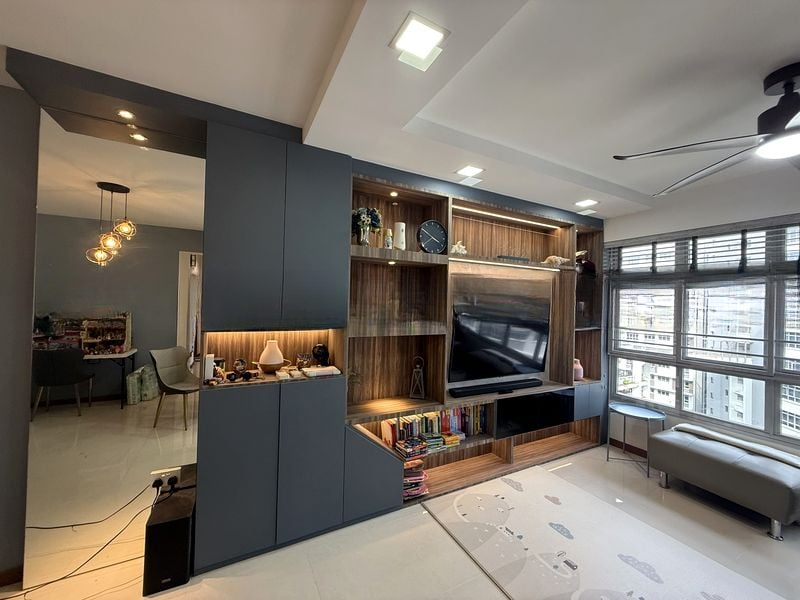 Step into a world of elegance and comfort in this beautifully renovated HDB flat at 609B Tampines North Drive 1. The abundant natural light floods the open-concept living area, highlighting the stunning marble-look wall tiles and the sleek wood-look laminate flooring. With cove lighting and a false ceiling, the ambiance is both bright and inviting, perfect for relaxation or entertaining.
