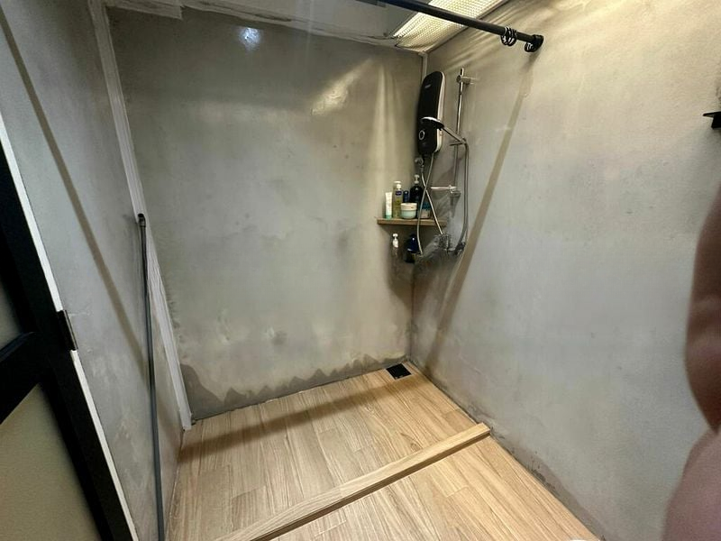 This well-maintained unit features three spacious bedrooms, including a master suite with a built-in L-shaped glossy wardrobe and large windows dressed with sheer and blackout curtains. The modern bathrooms boast marble-look wall tiles and contemporary sanitary ware, while the dining area, adorned with a stylish pendant light, seamlessly connects to the living space, enhancing the overall flow of the home.