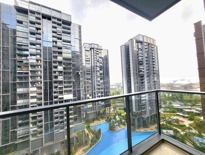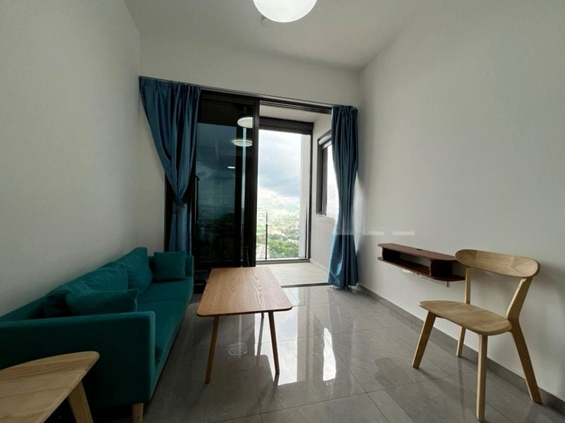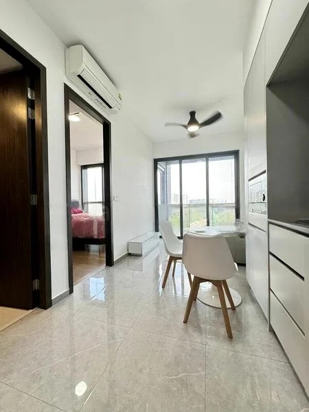 Step into a bright and airy sanctuary at PARC CLEMATIS, where abundant natural light floods through floor-to-ceiling windows, offering stunning views of the pool, city skyline, and lush greenery. The polished floor tiles and modern finishes create an inviting ambiance that instantly feels like home.