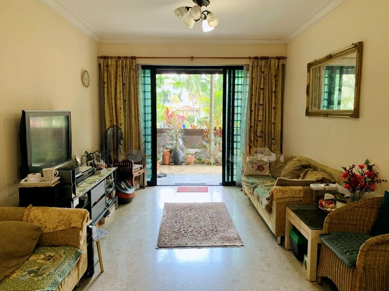 Step into a serene oasis where cozy living meets modern comfort. This well-maintained unit at Simei Green Condominium welcomes you with its inviting ambiance, featuring wood-look flooring and a private outdoor patio that offers lush greenery views and a tranquil pond. Natural light filters through the glass sliding kitchen doors, enhancing the warmth of the space.