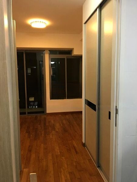 Step into this inviting 1-bedroom unit at Wilkie 80, where abundant natural light floods through the floor-to-ceiling windows, creating a warm and cozy ambiance. The tropical decal shower screen adds a unique touch, while the sliding glass door leads you to a private balcony, perfect for enjoying the serene views of landscaped greenery and neighboring buildings.