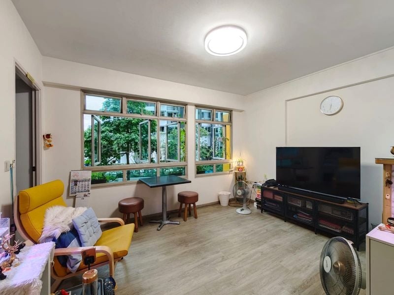 Step into this functional HDB flat and immediately feel the warmth of home, surrounded by lush greenery views. The space, while dated, offers a canvas for your personal touch with its original finishes and ample natural light filtering through the louvered windows.