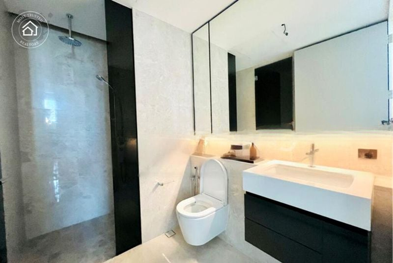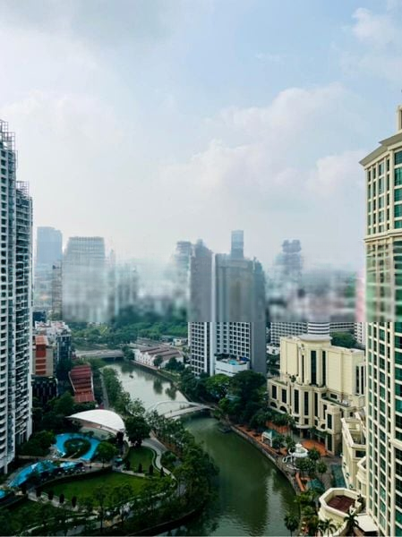 Step into a world of modern elegance as you enter this brand-new unit at RIVIERE. The abundant natural light floods through the floor-to-ceiling windows, illuminating the sleek grey marble flooring and creating an inviting ambiance. With breathtaking views of the city skyline, river, and lush greenery, this space feels like a serene retreat amidst the urban landscape.