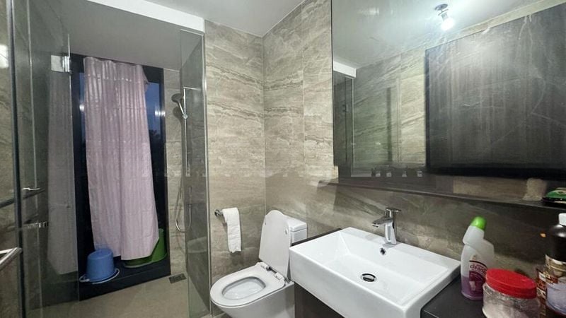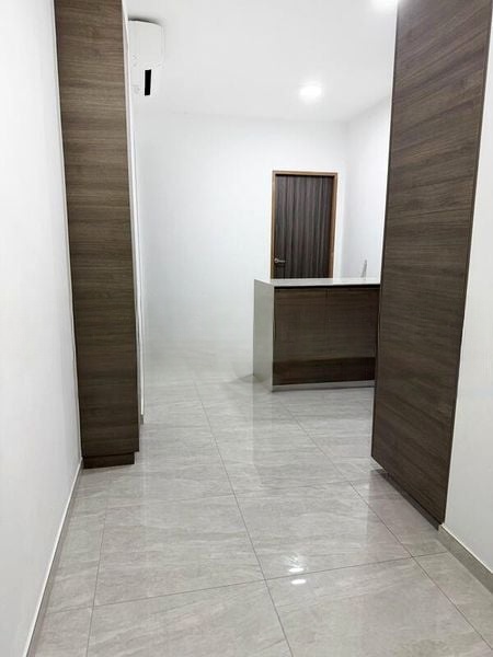 Step into this brand-new unit at The Florence Residences and be greeted by an abundance of natural light that floods the open-concept living space. The large format grey floor tiles create a seamless flow throughout, while glass sliding doors lead to a balcony offering picturesque views of the pool and city skyline, inviting you to unwind in a tranquil setting.