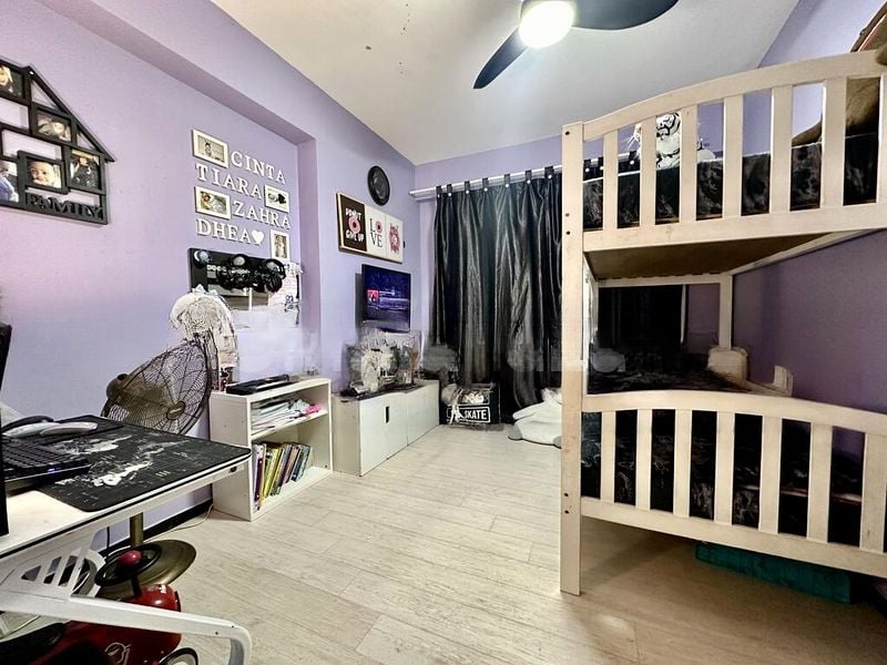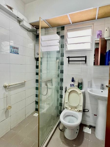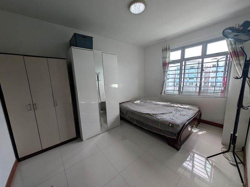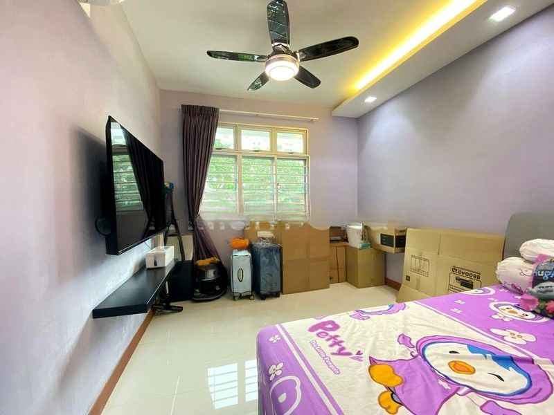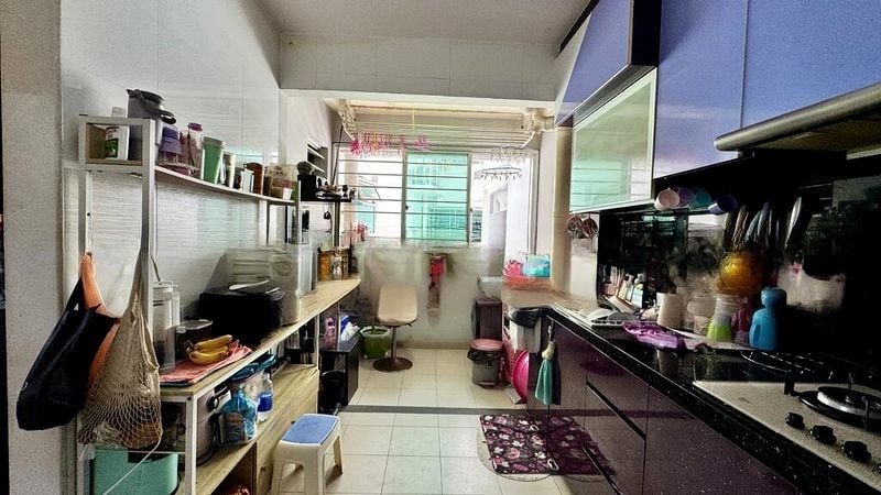 This well-maintained 4-room flat boasts an efficient layout of 93 sqm, featuring three bedrooms and two bathrooms. The kitchen is a standout with its striking red glossy cabinets and sleek grey upper cabinets, complemented by a stylish red glass backsplash. Each bedroom is thoughtfully designed, with ceiling fans and ample natural light, ensuring comfort and relaxation.