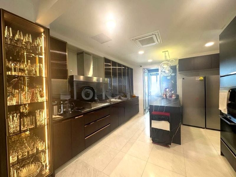 Step into a world of luxury as you enter this stunning unit at Reflections at Keppel Bay. The abundant natural light floods through the floor-to-ceiling windows, illuminating the exquisite finishes and designer touches throughout. Marvel at the large spherical wireframe chandeliers that create an ambiance of modern elegance, while the lush greenery and captivating city skyline views provide a breathtaking backdrop.