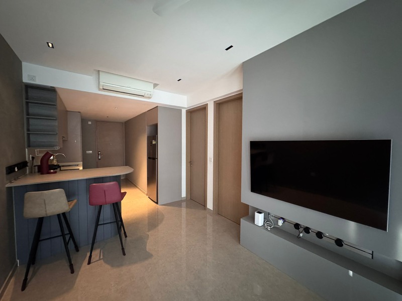 Step into a world of light and space in this beautifully maintained 3-bedroom unit at The Tapestry. The moment you enter, you are greeted by abundant natural light streaming through full-height windows, illuminating the elegant wood-slat TV feature wall that adds a touch of sophistication. The airy ambiance is complemented by views of lush greenery and the city skyline, creating a serene yet vibrant living environment.