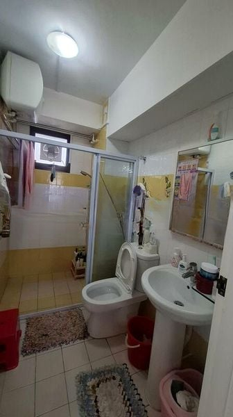 This well-maintained 2-bedroom unit features a thoughtful layout that maximizes comfort and functionality. The living room boasts direct access to the balcony, complemented by an L-shaped sofa and stylish abstract wall art. The master bedroom is a serene retreat with an upholstered headboard and built-in window cabinets, while the second bedroom is equipped with a compact vanity desk and ample storage. The bathroom showcases a contemporary vessel sink and glass shower enclosure, enhancing the overall modern feel of the home.