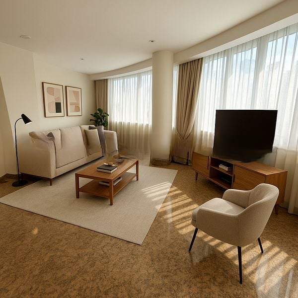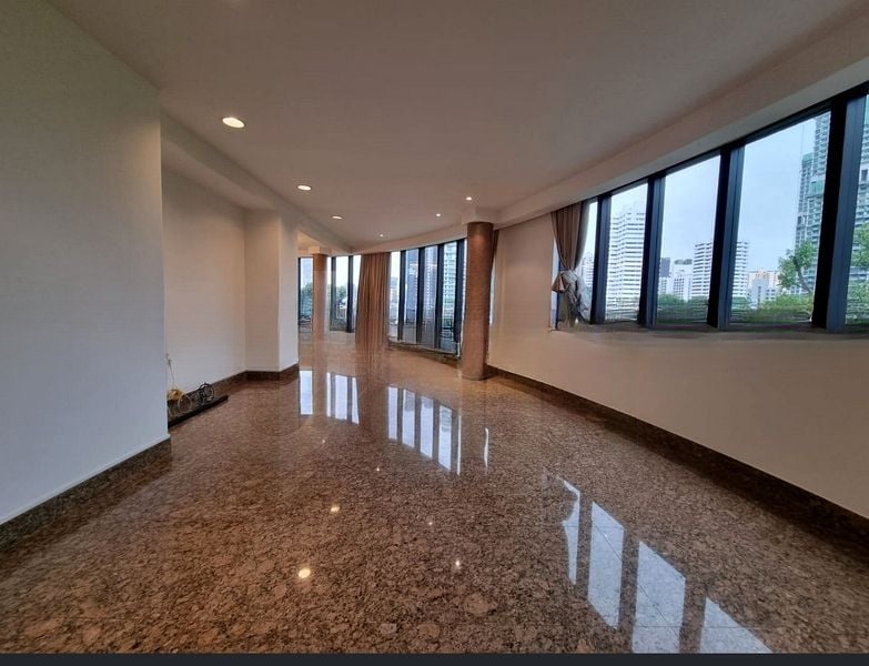 Step into a world of elegance and light as you enter this well-maintained unit at Grange 70. The bright and airy ambiance is accentuated by polished granite flooring and large curved floor-to-ceiling windows that frame breathtaking views of the city skyline and lush greenery. The entrance foyer, adorned with wood paneling and marble accents, welcomes you with a sense of sophistication and style.