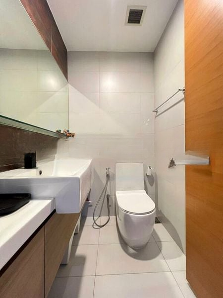 This well-maintained 2-bedroom, 2-bathroom unit features standout elements such as a sleek kitchen with white glossy cabinetry, built-in oven, and integrated hob. The living room boasts built-in storage and an integrated wine chiller, perfect for entertaining. Each bedroom is adorned with wood flooring and floor-to-ceiling windows, creating a serene retreat. The bathrooms are modern and stylish, featuring wall-hung toilets and vessel sinks that elevate the overall ambiance.